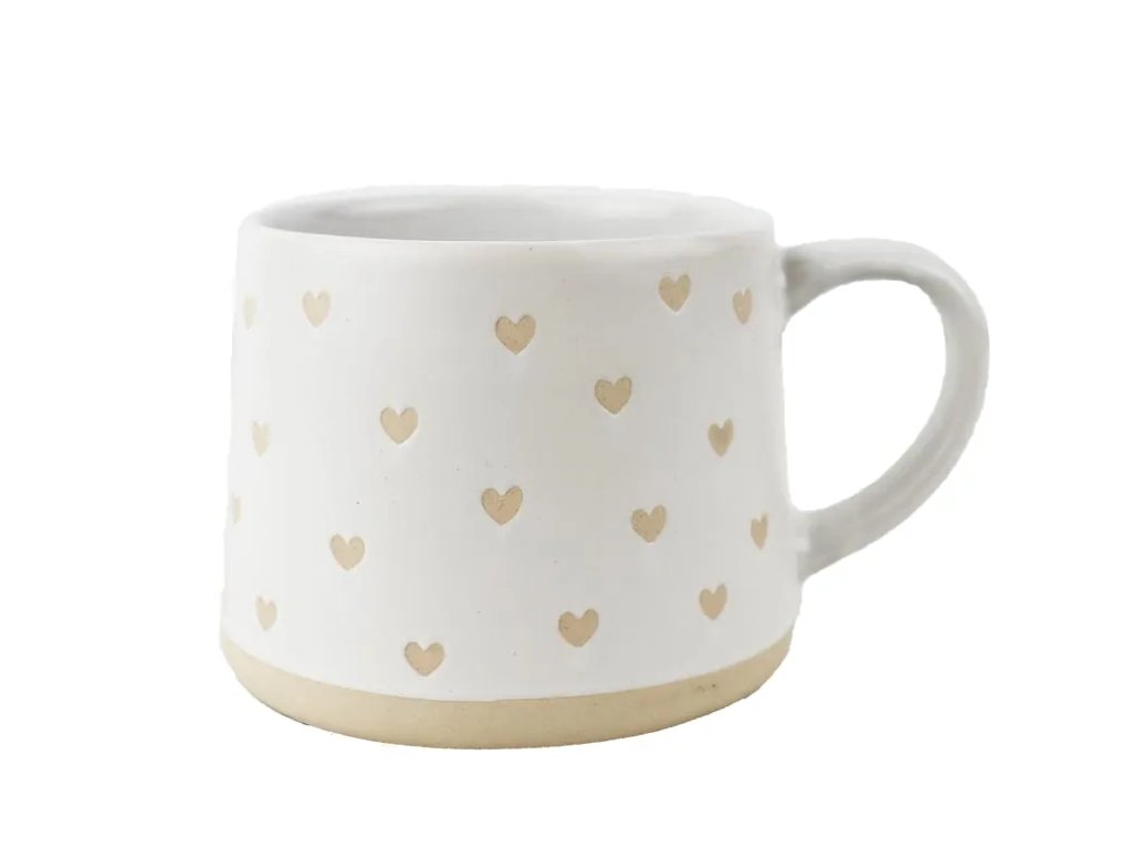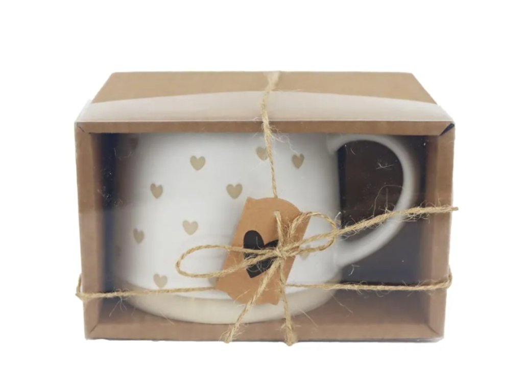 Keramický hrnek s béžovými srdíčky v dárkovém balení - 360 ml