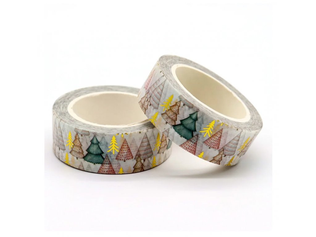 Kreativní páska s krásnými stromečky, doplňuje ji krásně zlatý vzor.