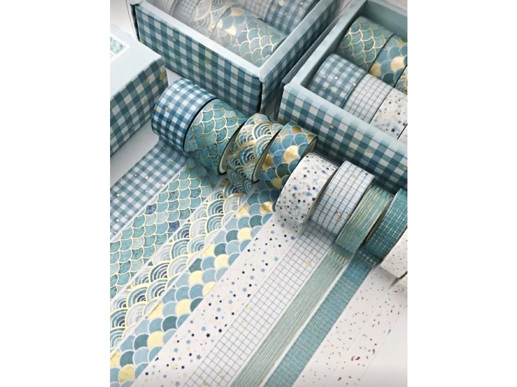 - kreativní sada washi pásek s tyrkysovo - zlatými motivy