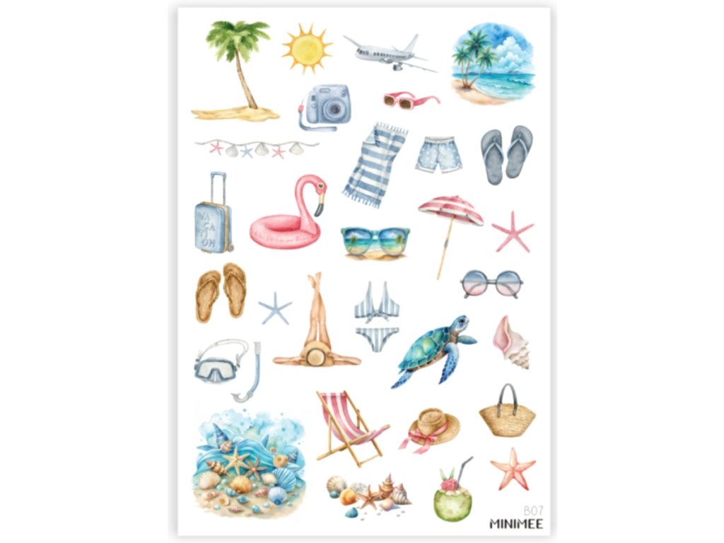 Kreativní samolepky letní dovolená - nálepky cestování - arch A5 - MINIMEE