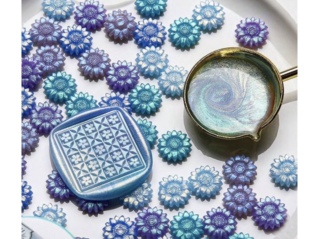 Mix pečetních vosků ve tvaru slunečnice - modro - zelený - 100 ks
