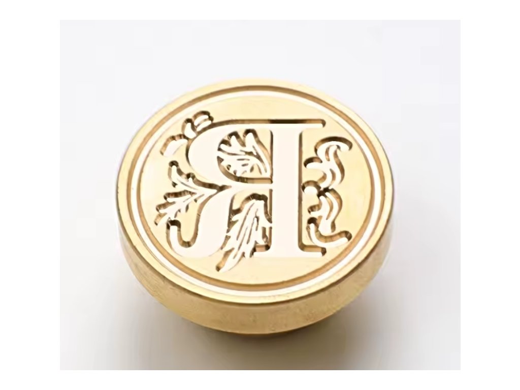Kvalitní kovové pečetidlo s písmenem R.