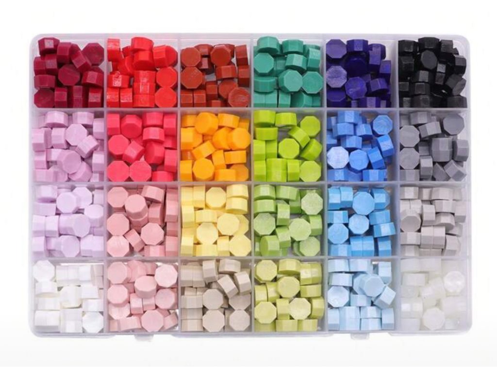 Sada pečetních vosků v organizátoru - 600 ks, 24 barev