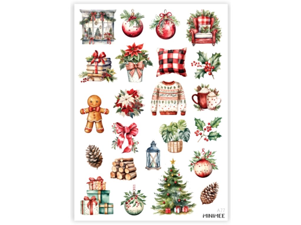 Samolepky s vánoční atmosférou z české dílny MINIMEE. Arch A5 samolepek s tématikou vánoc.