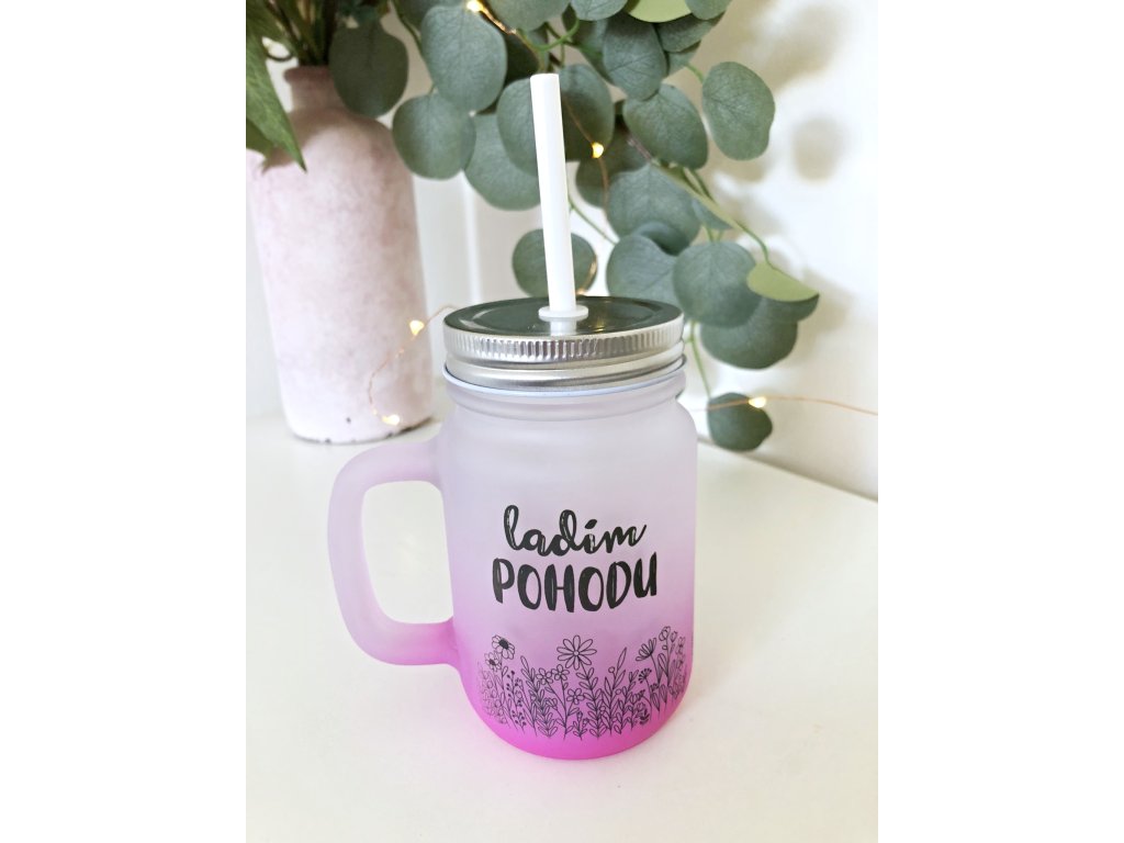 Stylová matná sklenice v něžných růžových tónech s nápisem Ladím pohodu ti bude skvělým parťákem na ledovou kávu, limonádu, cider nebo jakýkoliv jiný drink, který ti zlepší den.